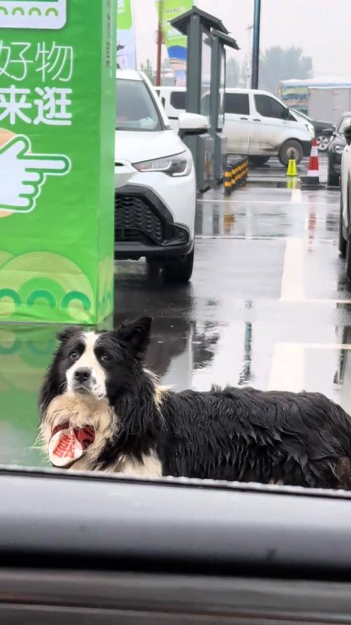 服务区走失的边牧眼巴巴找主人(视频截图)